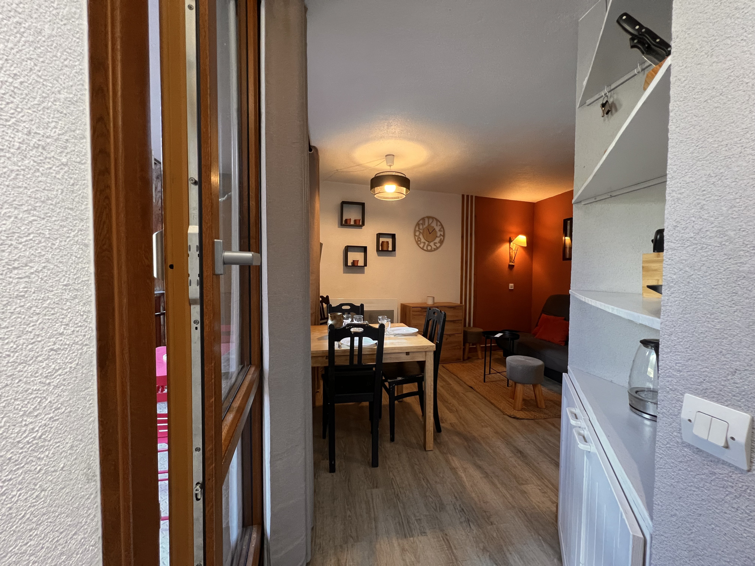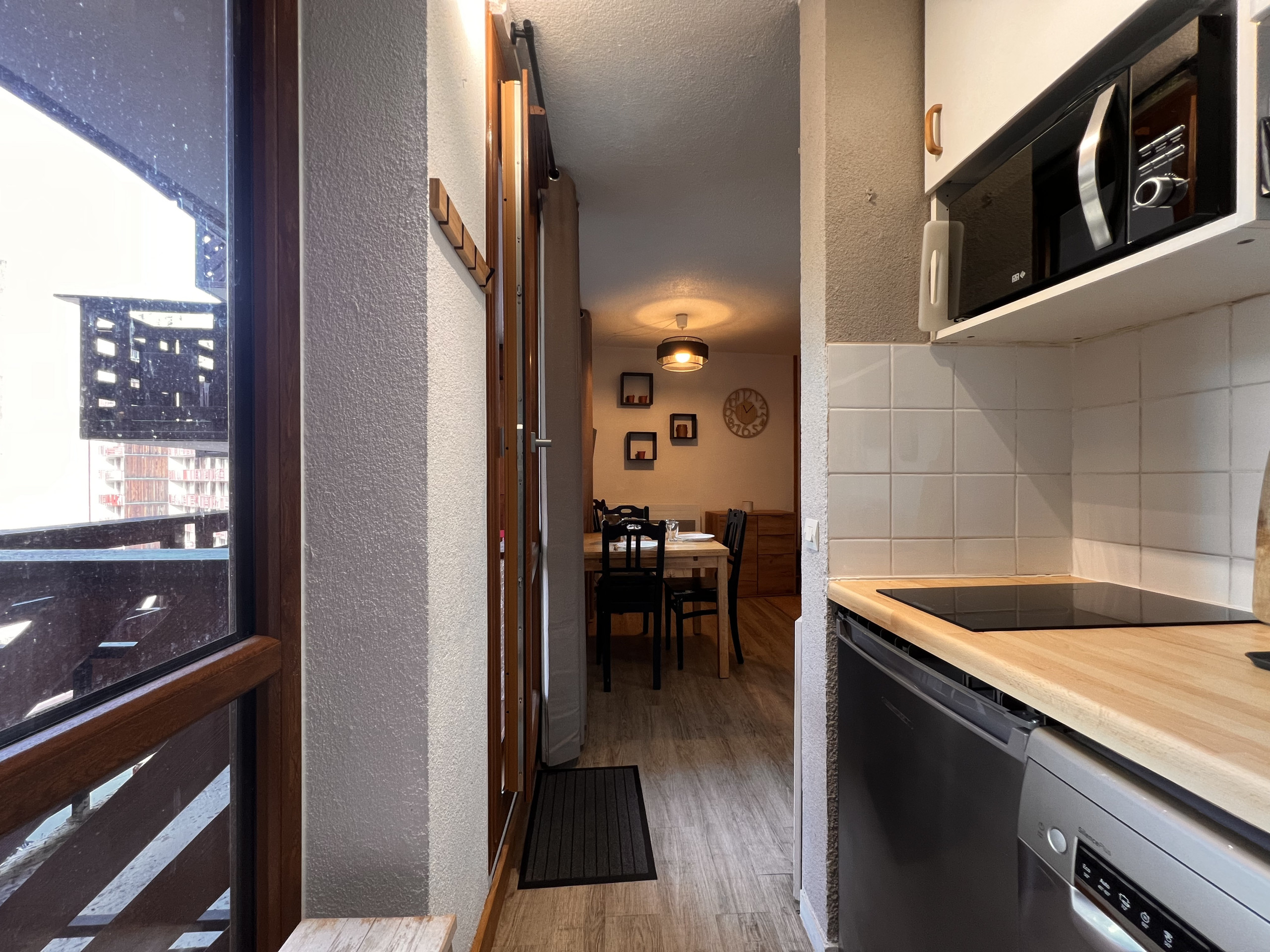 - Cuisine équipée avec deux feux (vitrocéramiques) micro-ondes et four combiné, réfrigérateur, lave-vaisselle, cafetière électrique, bouilloire, grille-pain...