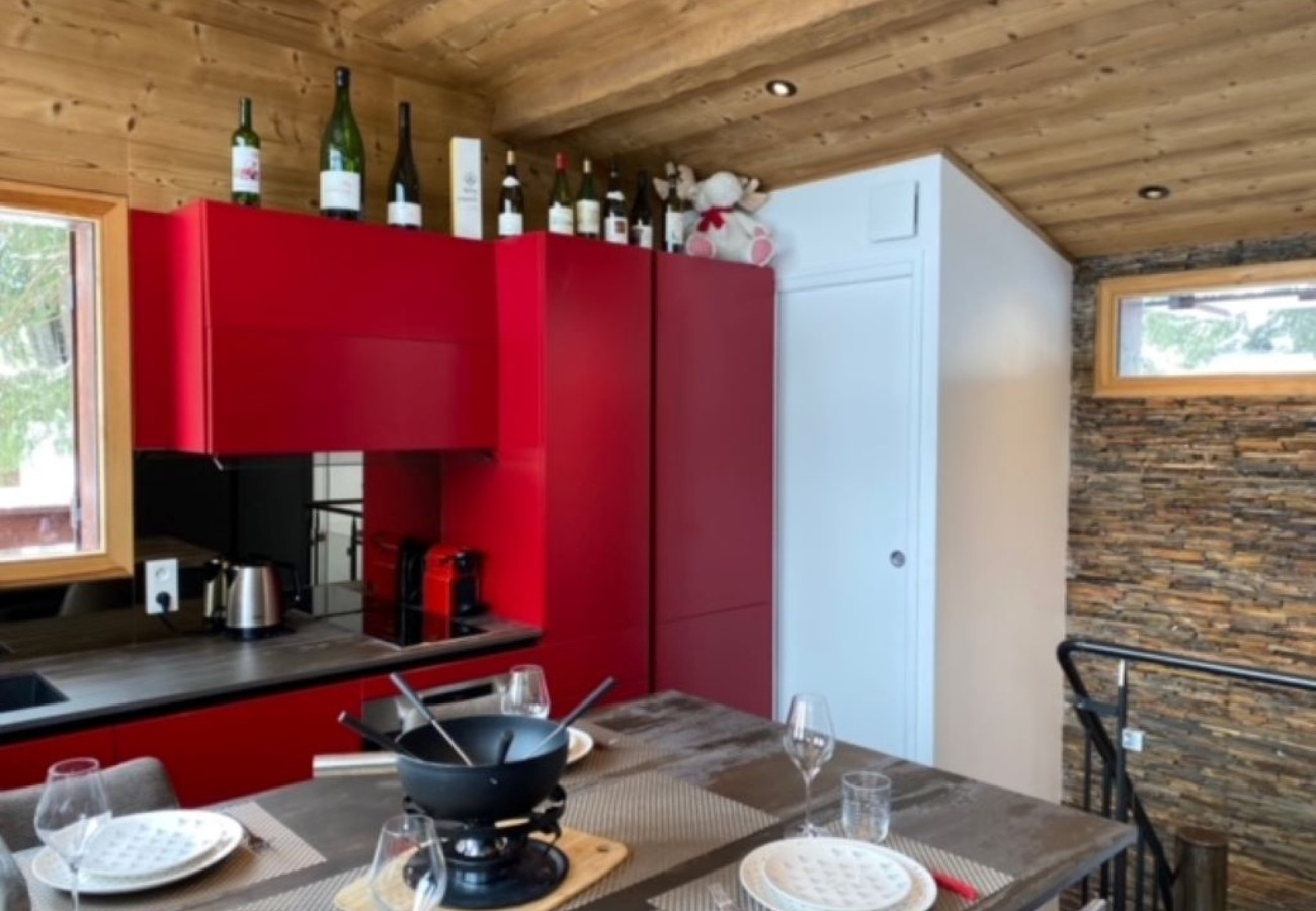Chalet à Montcel - Le Revard qui possède 2 chambre(s) et Capacité pour 6 personnes. Logement de 40 m². Elle dispose de 10 m² de terrasse, sèche-cheveux, chauffage électrique, 2 Télévisions. La cuisine américaine, à vitrocéramique, est équipée avec réfrigérateur, micro-ondes, lave-vaisselle, vaisselle/couverts, ustensiles/cuisine, cafetière, grille pain et bouilloire.